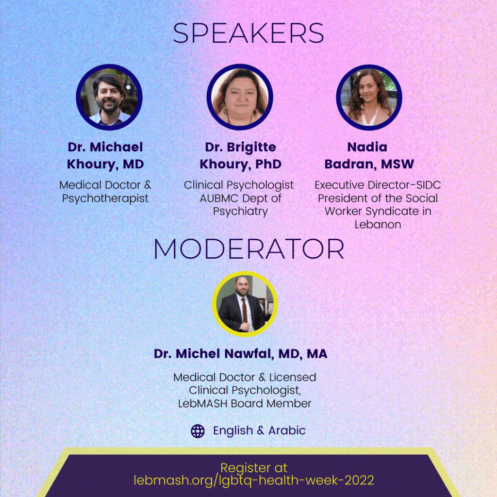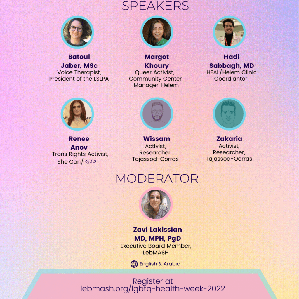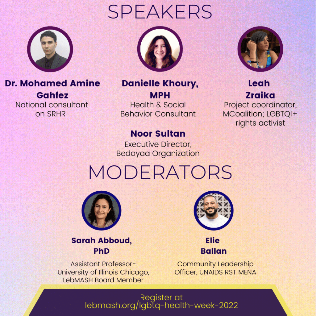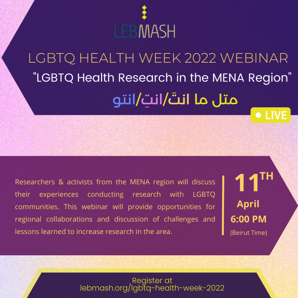 LebMASH’s 6th Annual LGBTQ Health Week is back! Join us for a series of webinars and trainings through which we will host several discussions to talk about LGBTQ health with focus on youth health, mental health, and sexual health.
